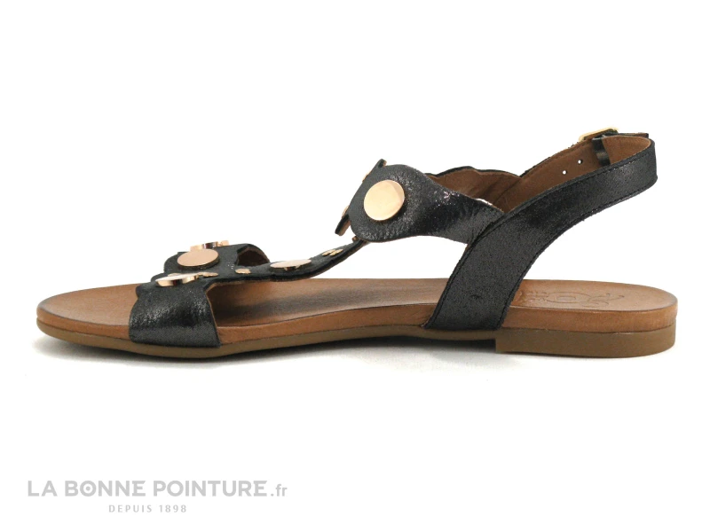 Les sandales plates originales Com un Point Shetri en cuir noir métallisé et Or, des nu-pied mode Femme au meilleur rapport qualité / prix !