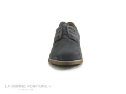 Pas de lacet Ă nouer, 3 Ă©lastiques noirs sur le dessus permettent d’enfiler facilement le derbi noir Karyoka.