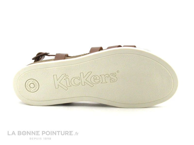 Cette belle sandale Femme Kickers Kick Alice est en cuir lisse marron clair, harmonieusement associé à une semelle liège.