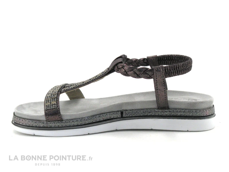 Ce nu-pieds fantaisie est gris métal, orné de petites perles brillantes sur les laniÚres.