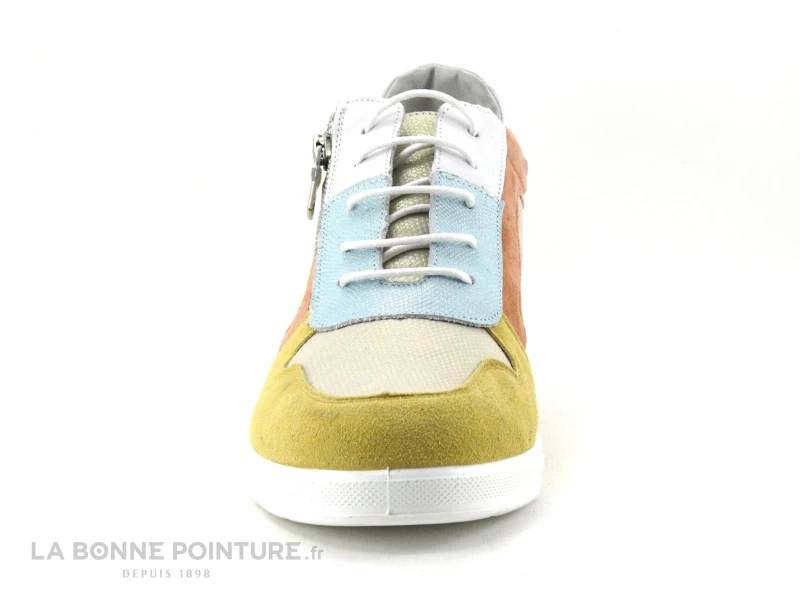 Cette basket multicolore Femme Pedi Girl Alz Amo mélange cuir lisse, cuir métallisé, cuir verni et cuir velours .