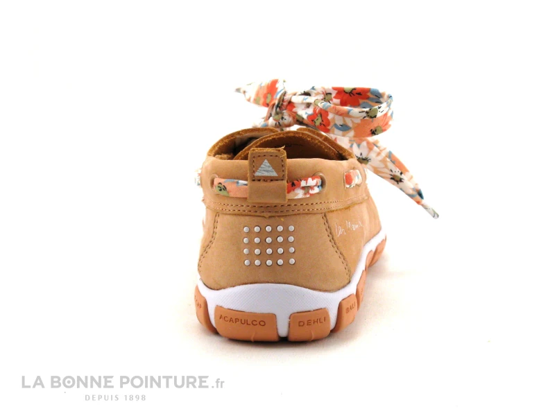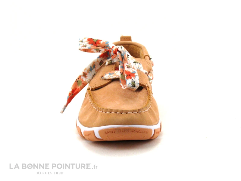 Cette tennis bateau Femme Tbs Janaele est fabriquée avec un beau cuir nubuck orange (abricot). Un lacet fleuri traverse une dizaine d’oeillets sur le pourtour de la chaussure Tbs Les Marinières et féminise à ravir le modèle.